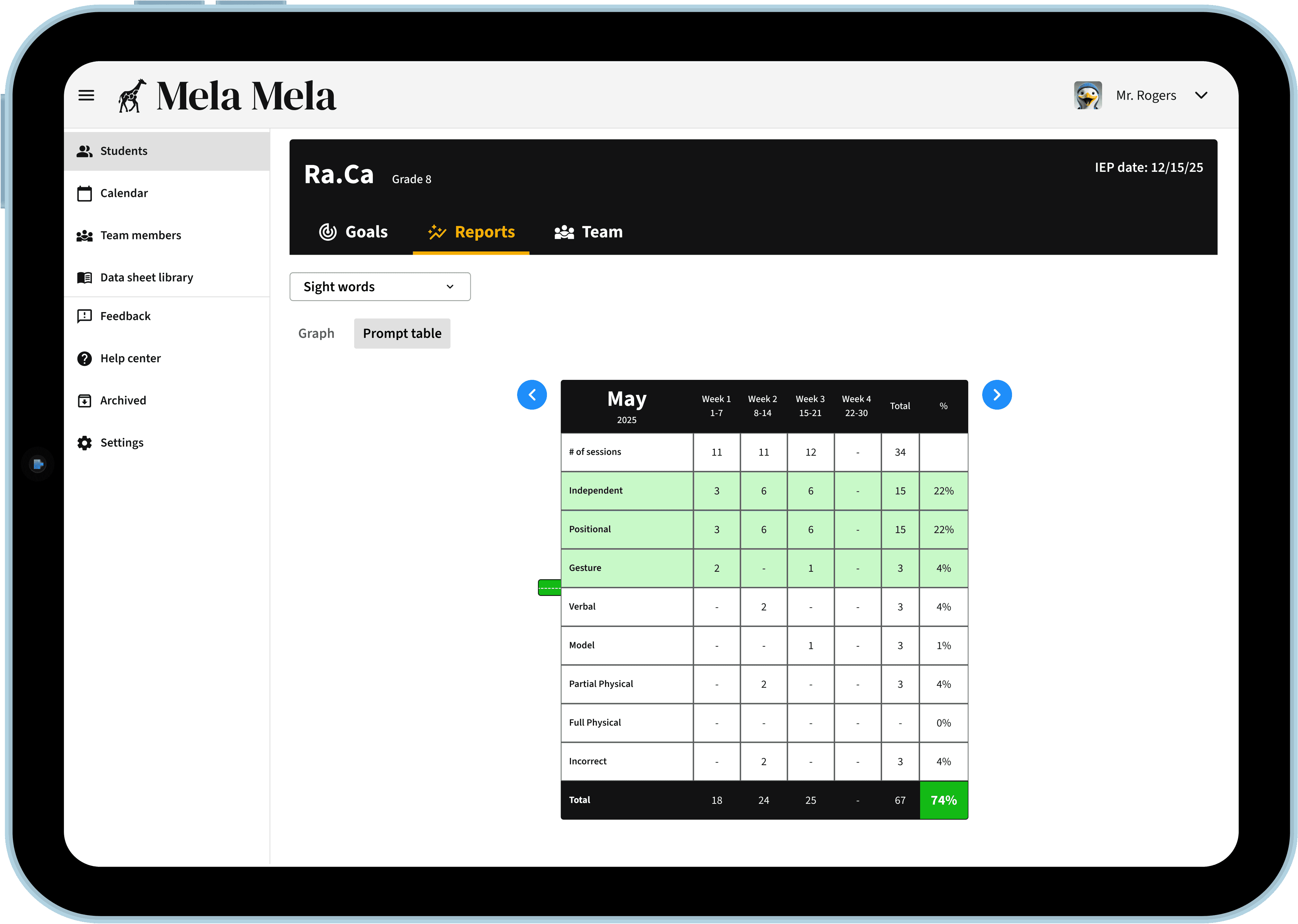 We pick up where IEP SIS systems leave off. Paraprofessionals track. Teachers analyze. Administrators support. Mela Mela is the perfect complement of clarity and consistency for tracking student progress.