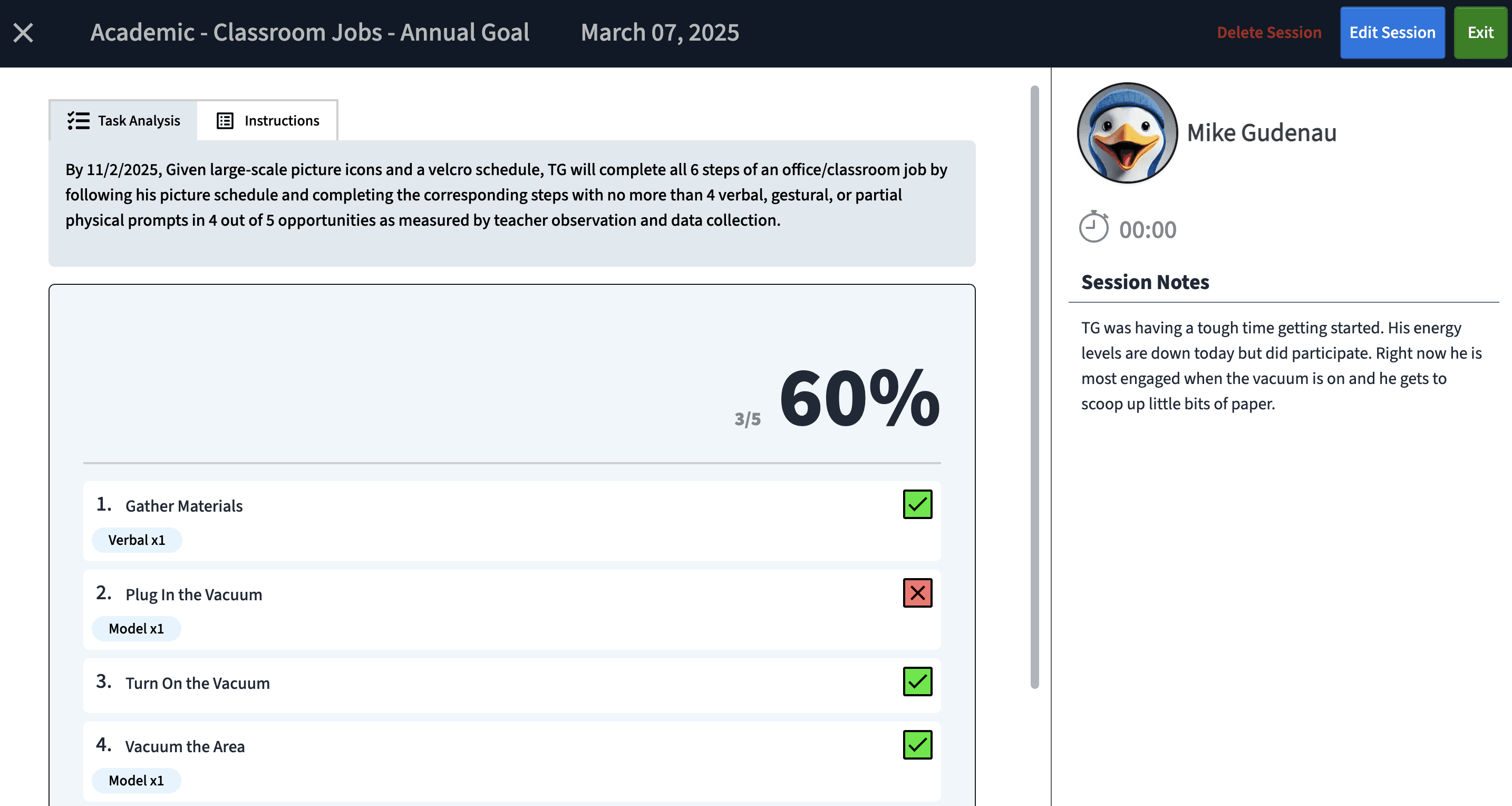 • By analyzing session notes, trial results, prompts used, and photos, teachers gain a clearer picture of student progress.