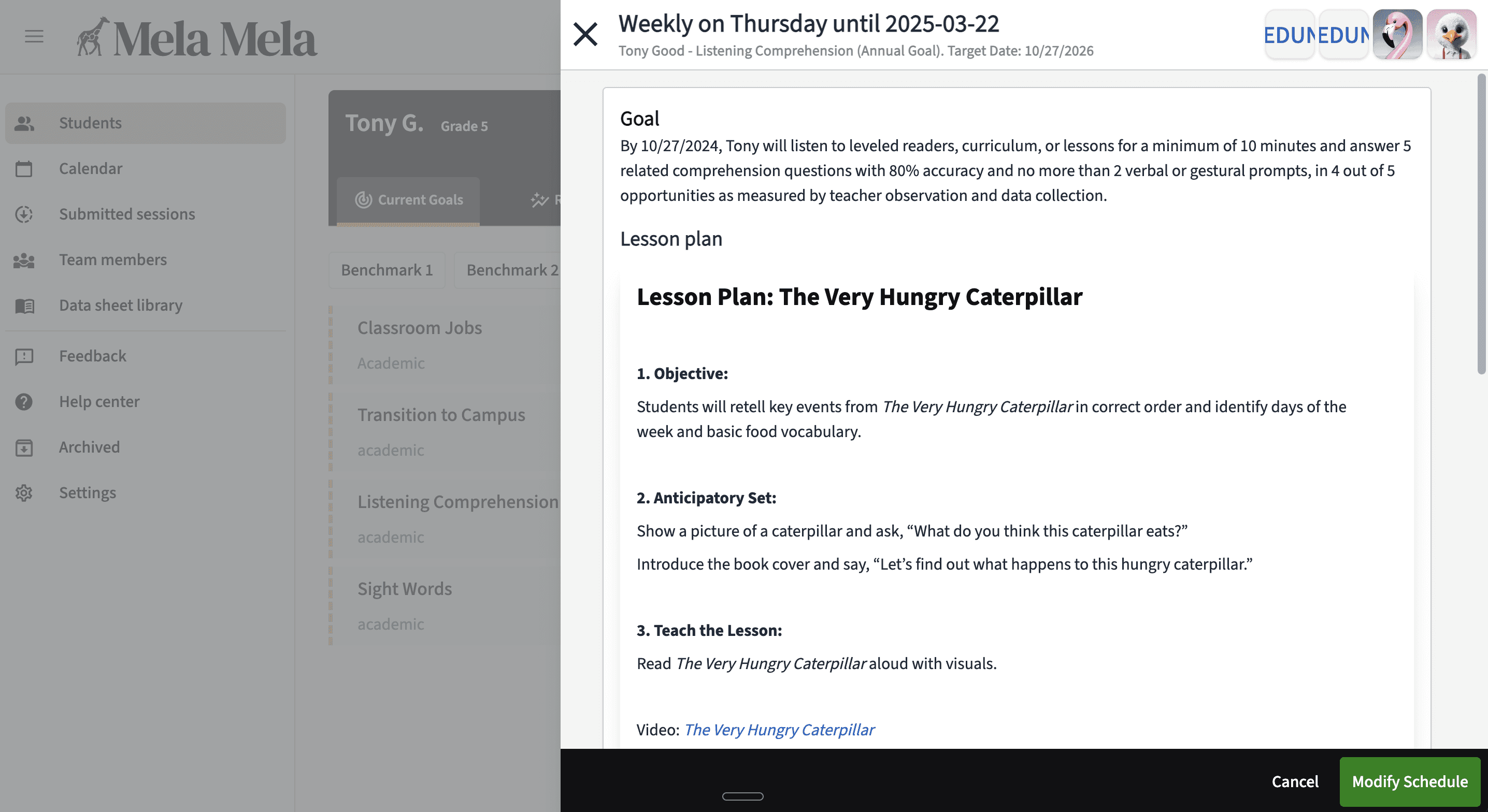Administrators have the flexibility to modify recurring event sessions at any time for any individual goal. This ensures schedules remain adaptable to changing needs. This feature applies to both annual goals and benchmarks, giving administrators full control over recurring schedules for each type of goal.