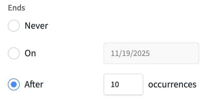 End After a Certain Number of Occurrences: Specify how many times the session should repeat.