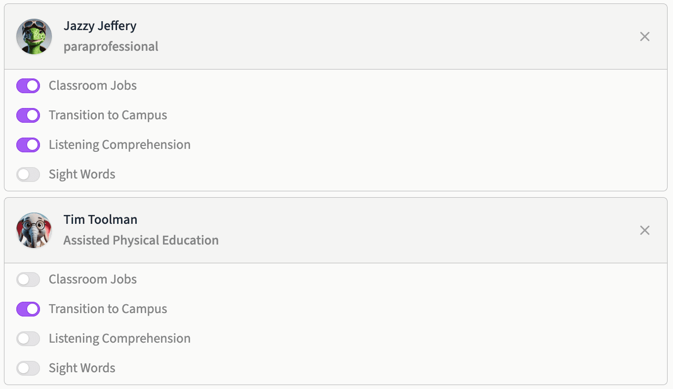 Manage permissions to control which team members are assigned to specific goals within the student’s profile.